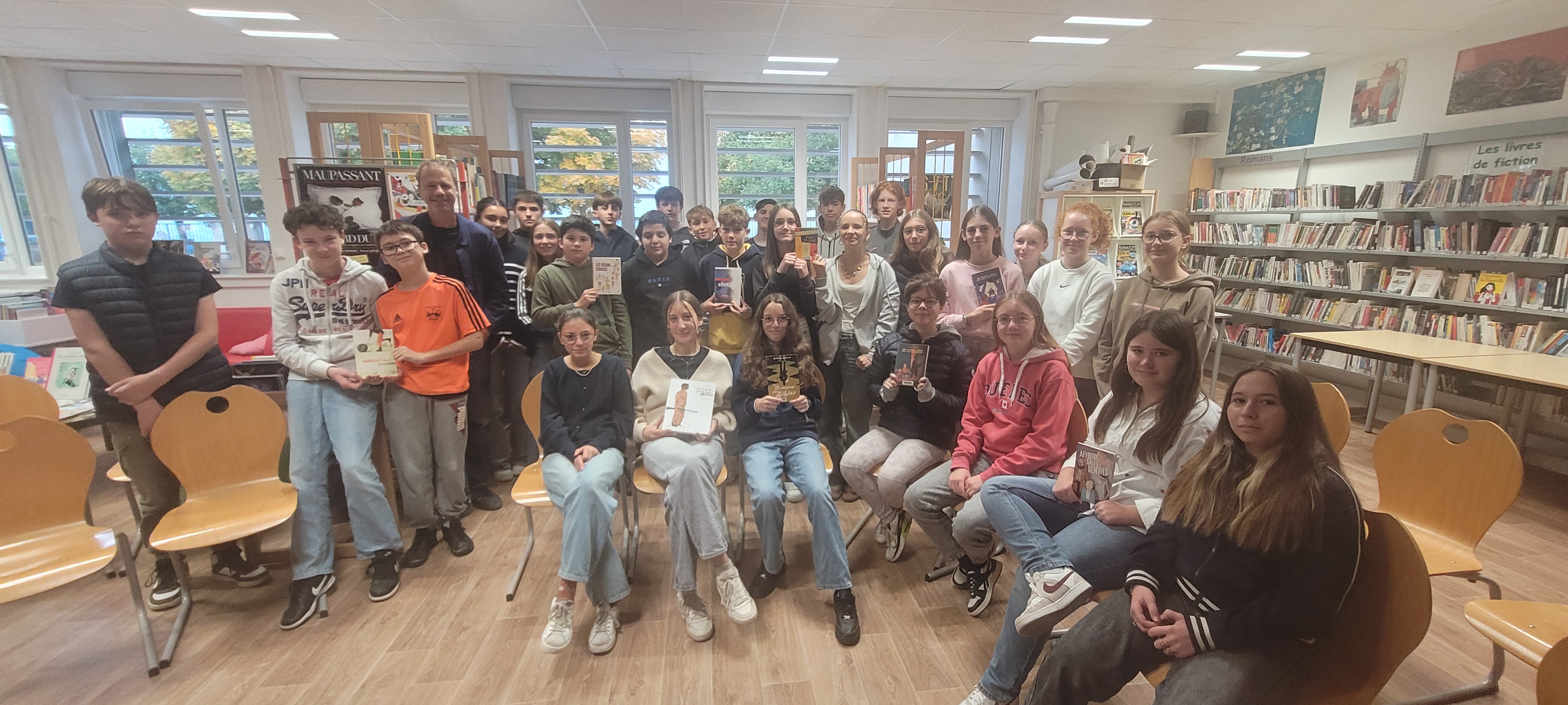 Vendredi 10 octobre au CDI, ils ont pu poursuivre ce travail en échangeant avec l'auteur :