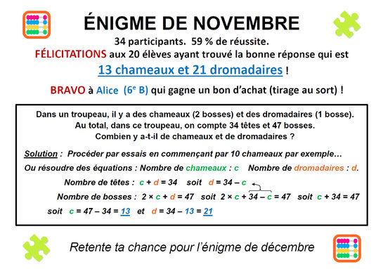 Par NICOLAS VERNAY, publié le jeudi 27 novembre 2025 12:18 - Mis à jour le jeudi 27 novembre 2025 12:35Regarde bien la solution pour progresser dans la résolution de problèmes, puis retente ta chance pour l'énigme de décembre. -