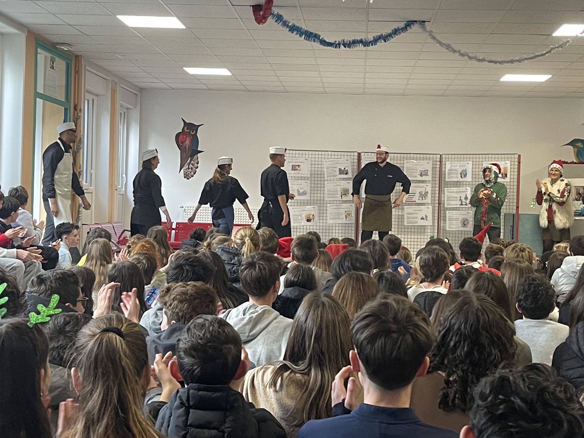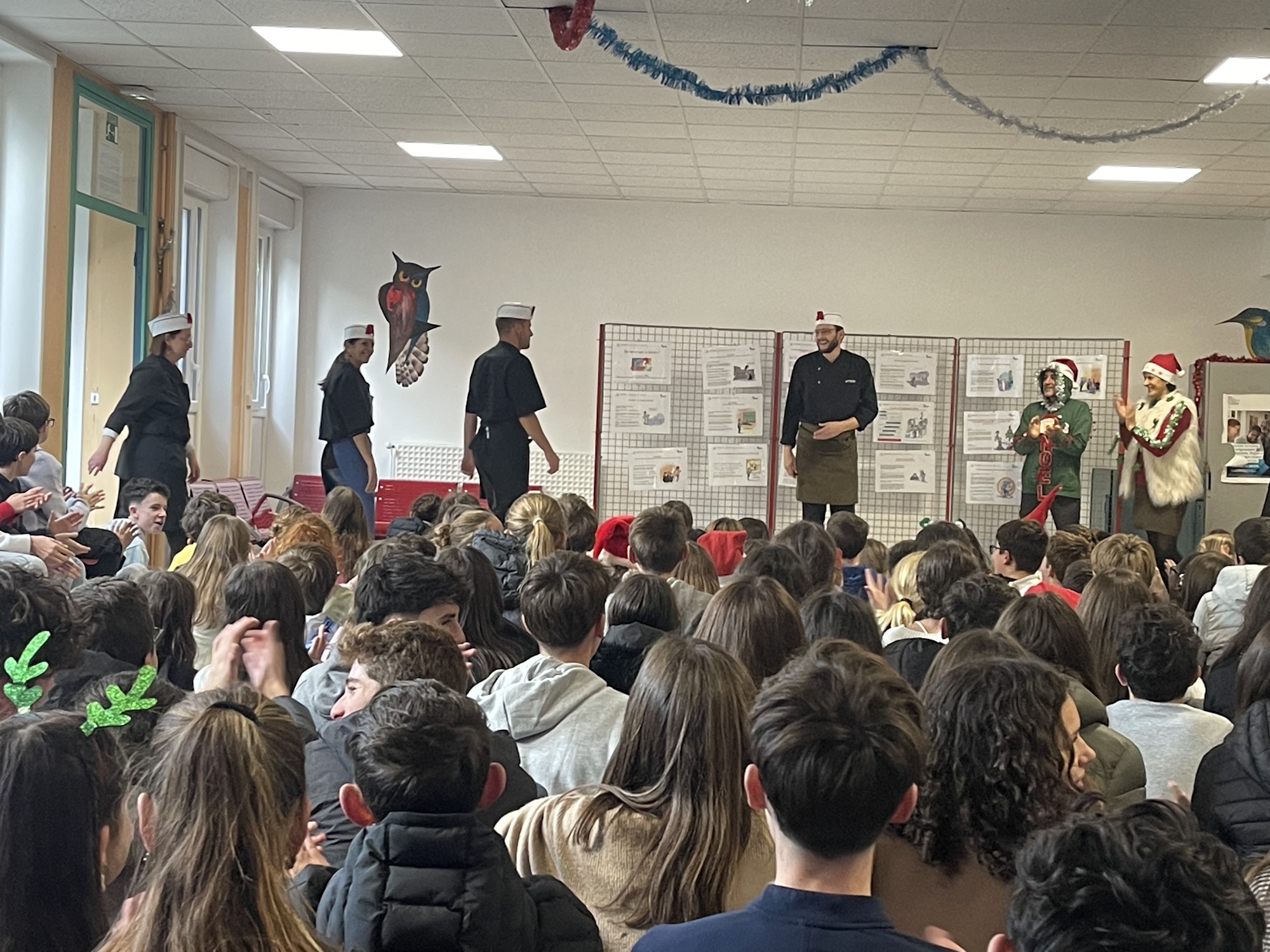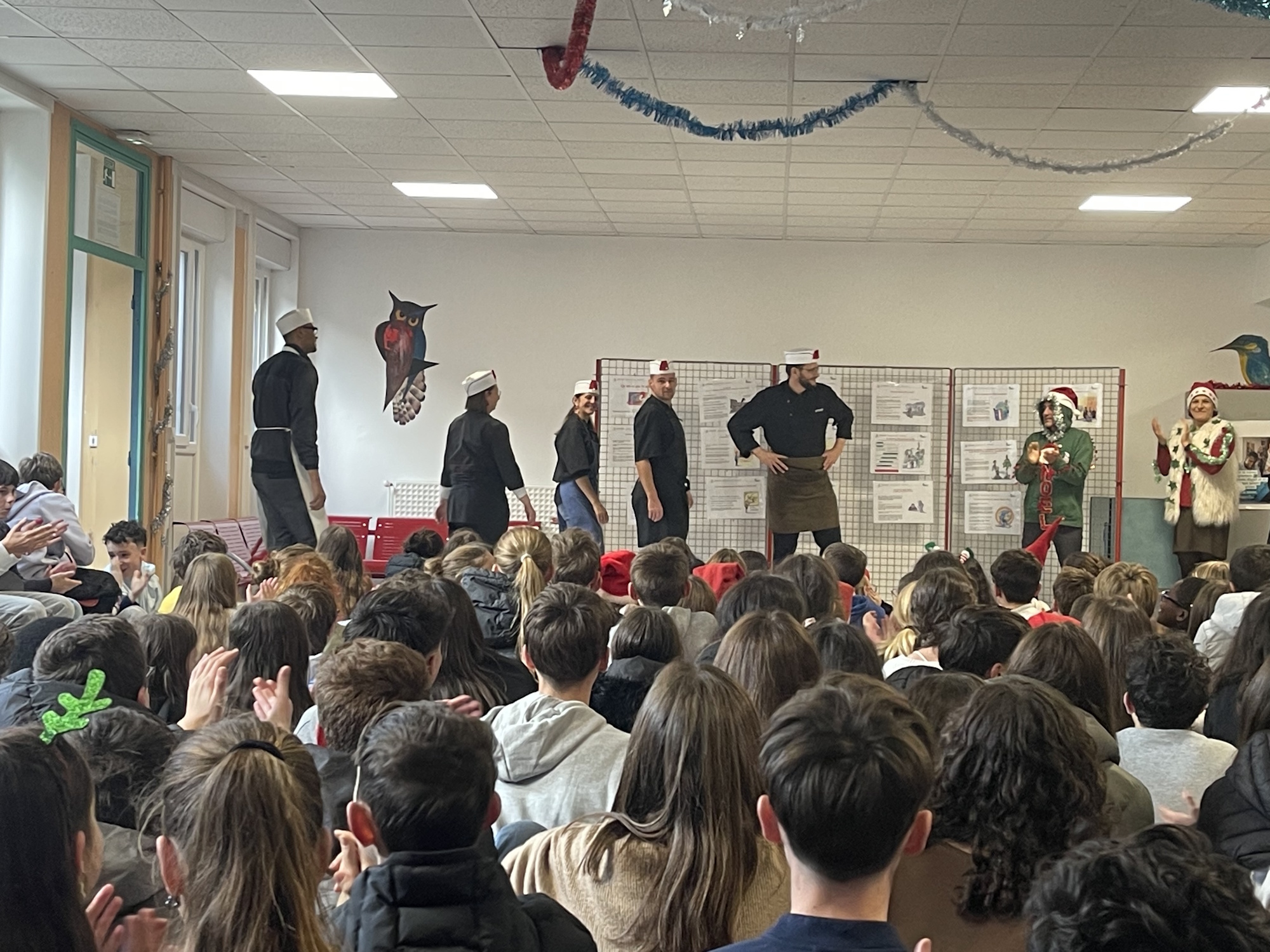 Aujourd'hui, les élèves et les personnels du collège Laurent Eynac ont pu profiter d'un délicieux repas de Noel préparé par l'équipe des agents mis à disposition par le Conseil départemental de Haute-Loire. Ce moment a été l'occasion de les remercier chaleureusement ; ils ont, ainsi, été longuement applaudis par les élèves pour leur dévouement et leur engagement au quotidien.