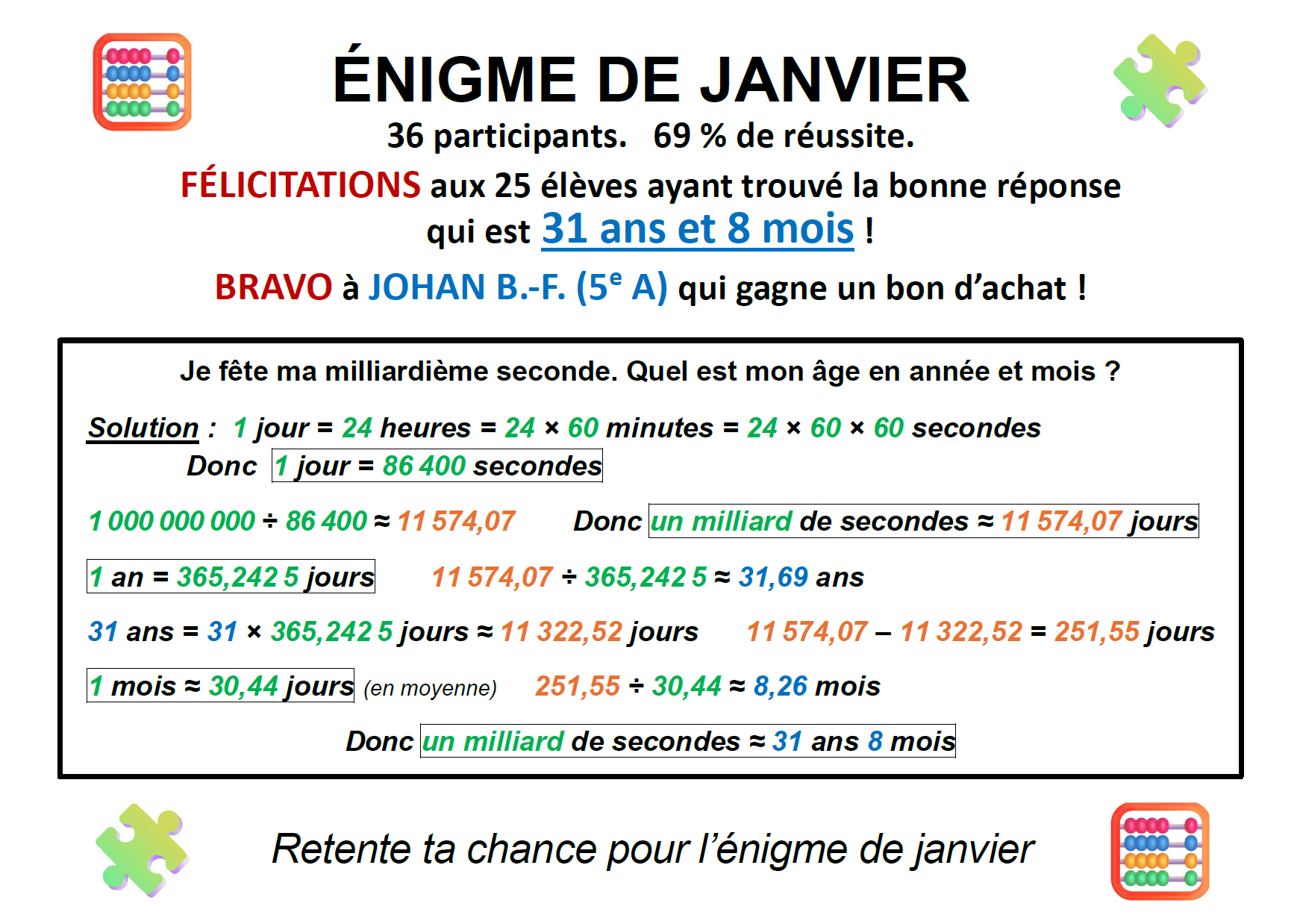 Étudie bien la solution pour progresser dans la résolution de problèmes, puis retente ta chance pour l'énigme de février/mars.
